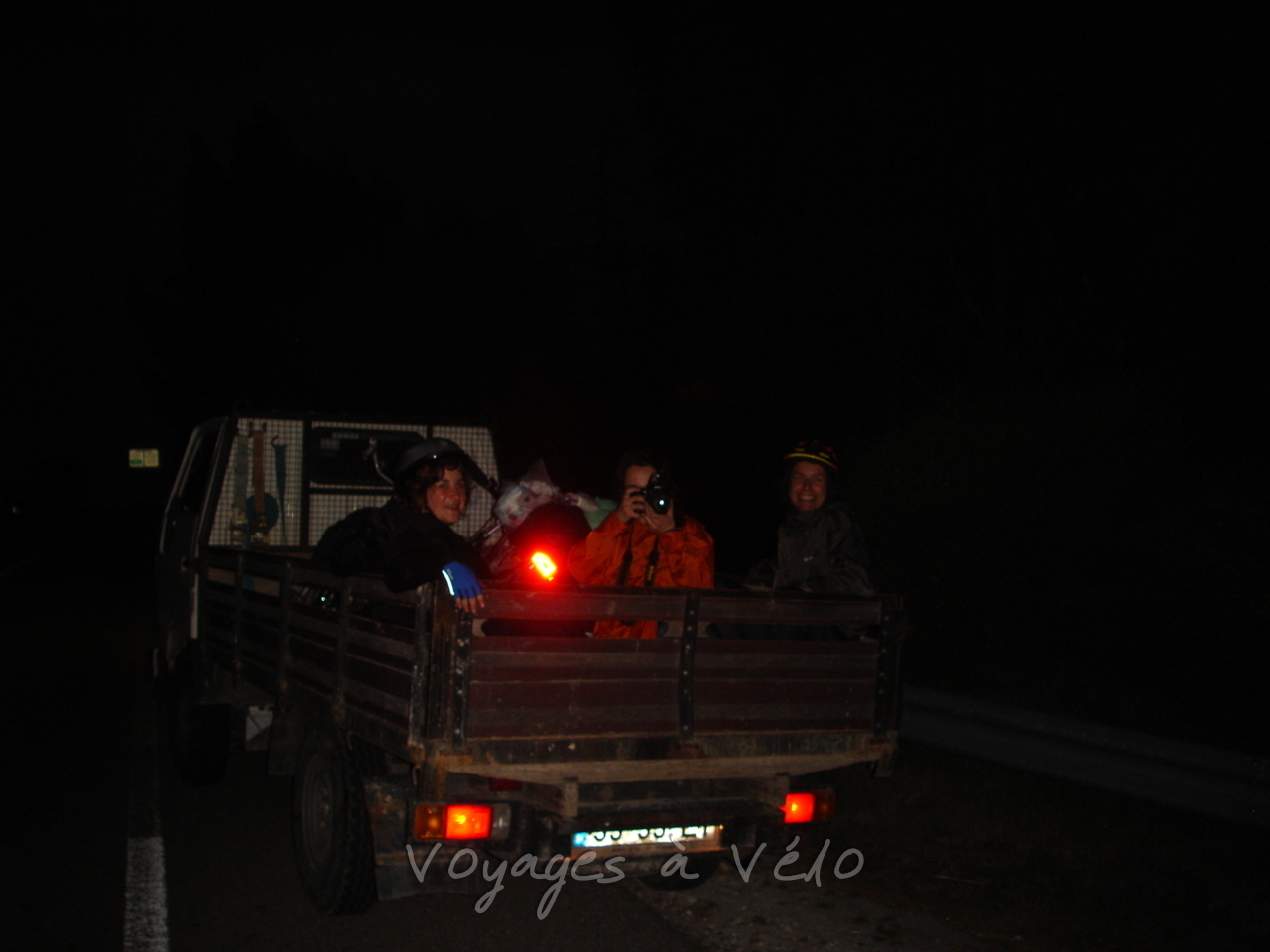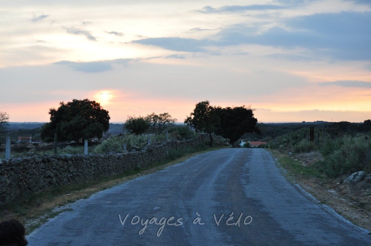 Já perto de Castelo de Vide decidimos arriscar num corta mato, por uma estrada cortada num ponto que cruzava com a linha do comboio. No meio do nada tivemos a sorte de nos cruzar com um senhor que habitava por ali perto que nos indicou que a passagem pela linha do comboio era possível ajudando-nos a passar as bicicletas pela vedação que impedia o acesso à linha. Ficámos-lhe agradecidos pois pouparamos alguns kms e tempo pois o sol ameaçava em breve esconder-se e ao longe ouvia-se a trovoada que se avizinhava. Uns 200m depois estavamos de volta à estrada quando naquele momento passou uma carrinha de caixa aberta e o condutor oferece-nos boleia. Faltavam 3km para Castelo de Vide. O cansaço era evidente e já começava a ficar bastante escuro pelo que nós mulheres não hesitámos em aceitar. Foi um sim convicto! Os nossos companheiros decidiram seguir de bicicleta. ‘Grande João Pedro’ um grande obrigado pela simpatia e generosidade! Foi um grande gesto, muito amável.