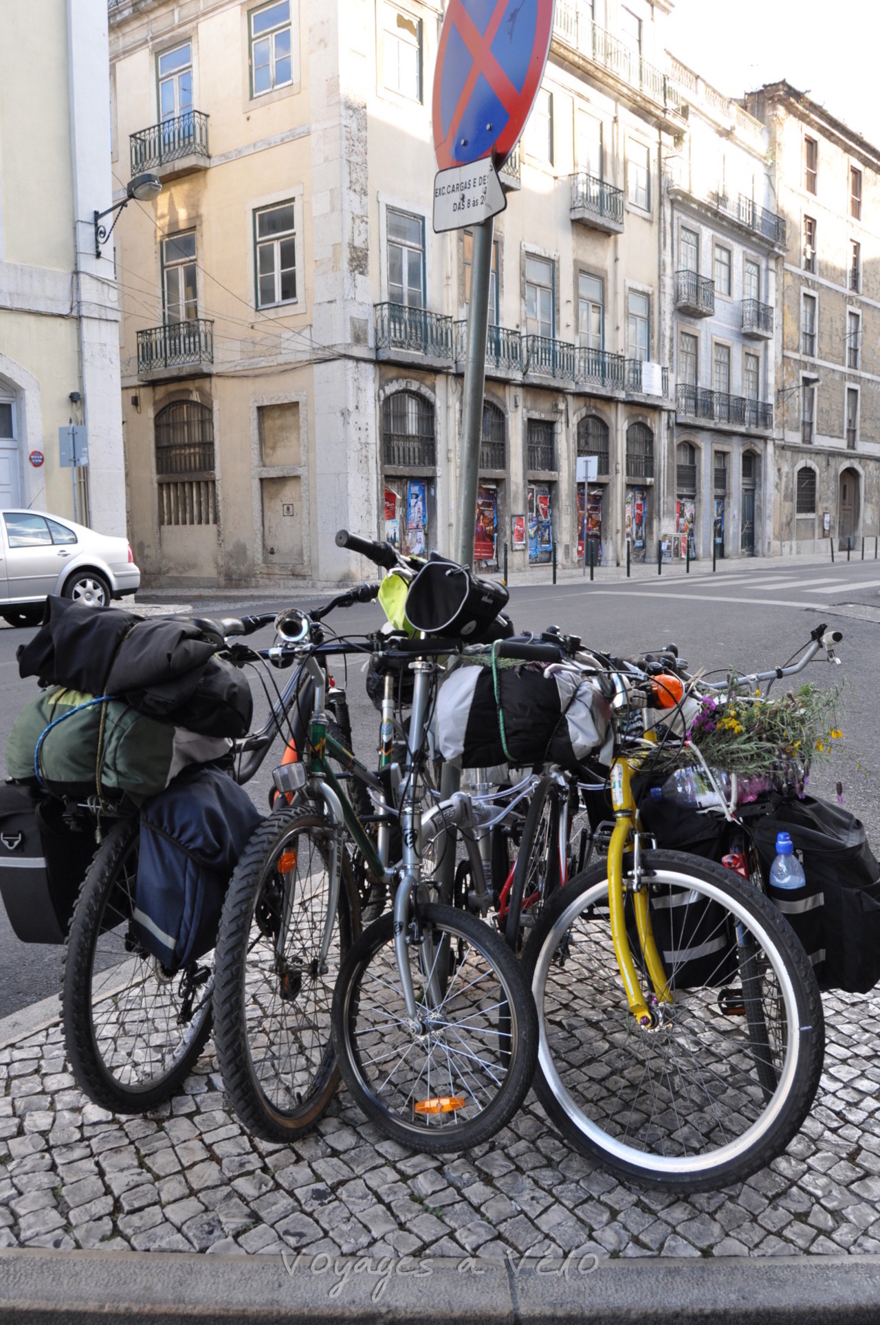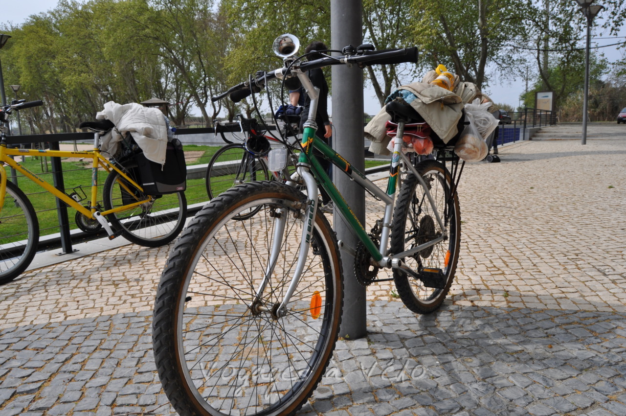 As bicicletas já em Lisboa, estacionadas, enquanto aproveitávamos para comer algo num café ali por perto.