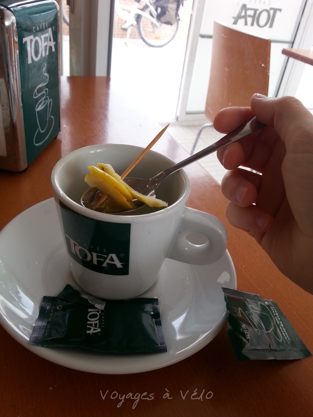 Nas localidades por onde passámos estávamos sempre atentos a cafés mas infelizmente nem um aberto. Era cedo e era Domingo. Não ajudava. Já pedalávamos há algum tempo e precisávamos de reforços e uma reconfortante pausa. Seguimos as rectas, que longas, muito longas seguiam o Liz que nos acompanhou até Leiria onde felizmente encontrámos algo aberto. Um café simples mas onde fomos atendidos com muita simpatia. No final a senhora ofereceu-nos uma garrafa de água a cada um para a viagem. Viu as bicicletas e decidiu agradar-nos. Gestos simples que nos alegraram.