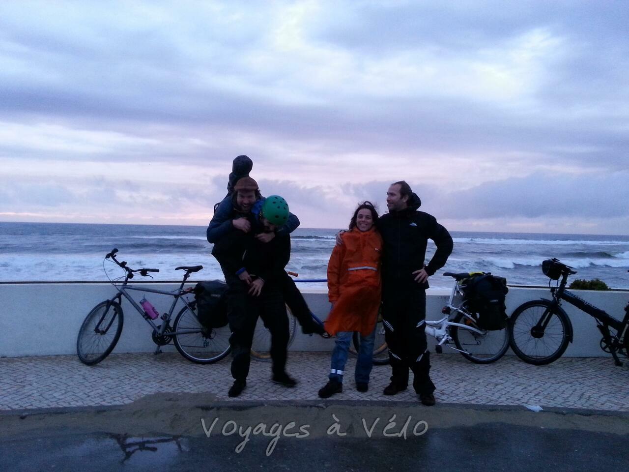 Eis que chegaram entretanto a M., o J. e o T. Encontraram-se connosco no mesmo café e aproveitaram para fazer também uma pausa. Olhámos pela janela e o dia continuava a não prometer sol. Tínhamos que arrancar, metermo-nos à estrada mas entretanto as pingas começaram a surgir. Seguimos pela estrada atlântica.
