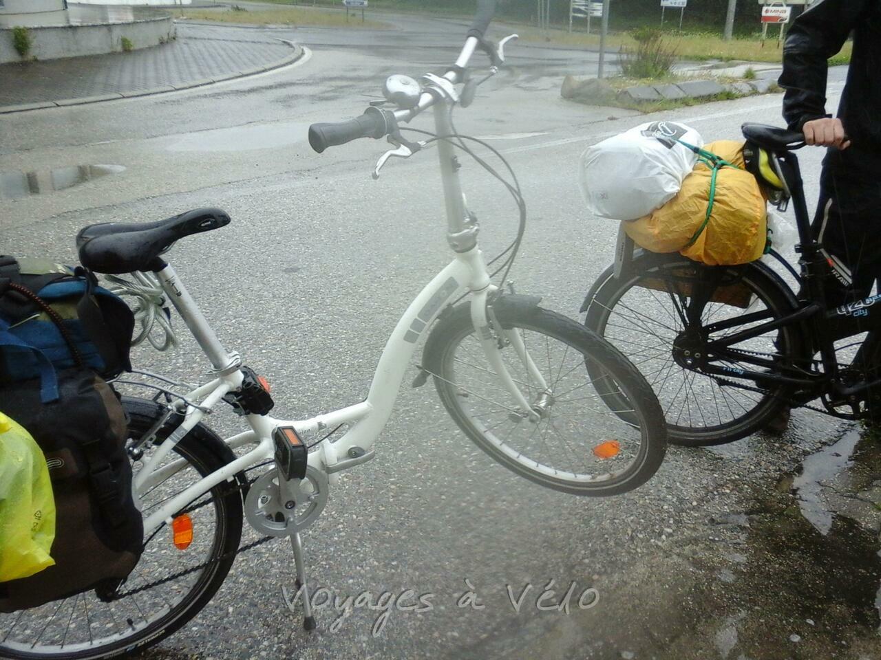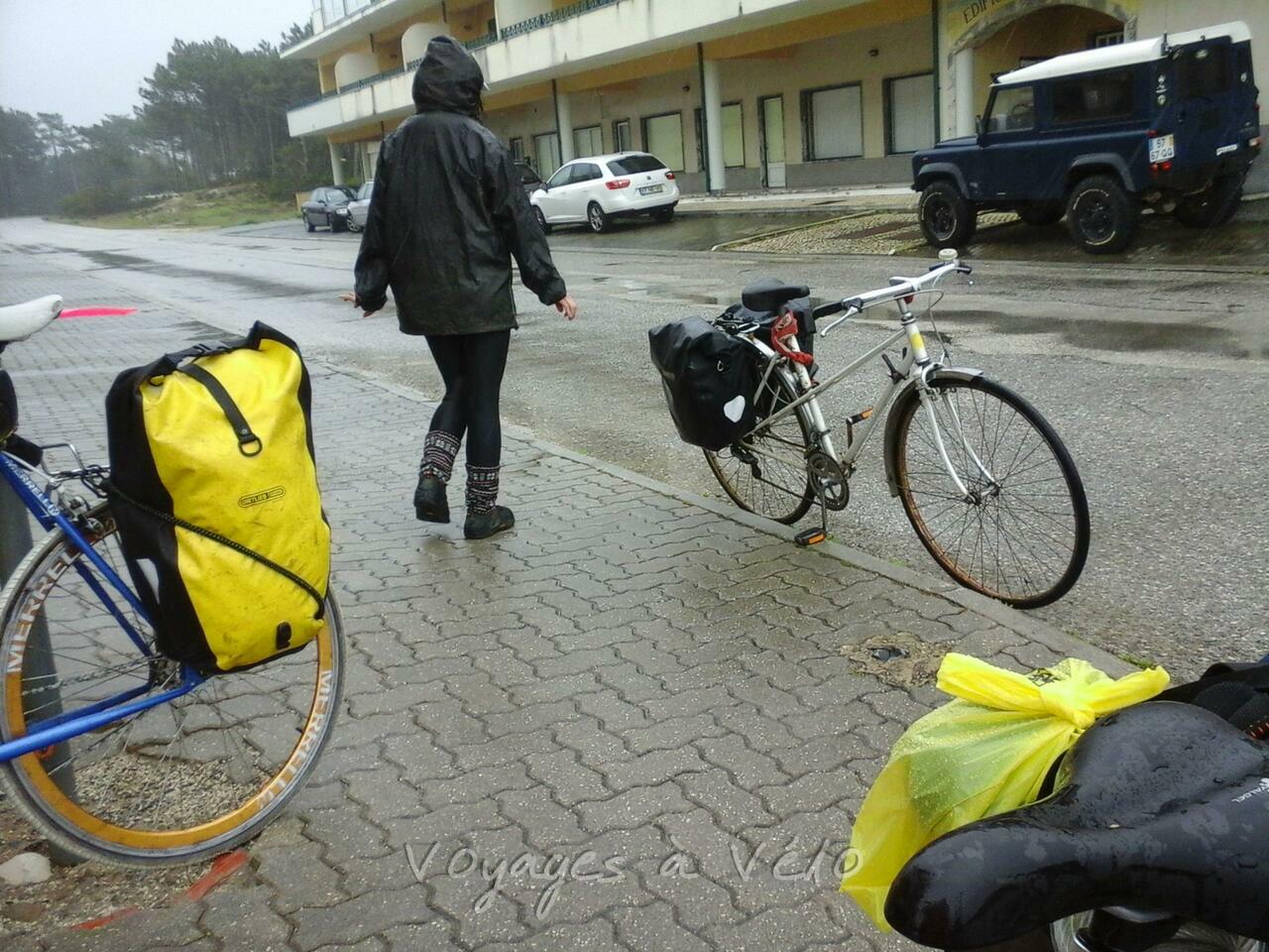Pedalámos sempre debaixo de chuva, mas não nos impedia de continuarmos. Tínhamos os impermeáveis e a bagagem estava bem protegida. Estávamos em condições de continuar e era essa a nossa vontade independentemente do tempo.