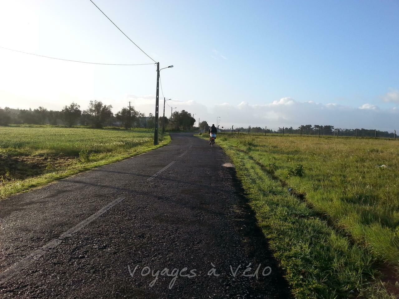 O dia começou cedo para mim e para o A. A M., o J. e o T. ficaram porque seguiam viagem para norte. Eram 07h quando pegámos nas bicicletas para seguir caminho rumo a Leiria onde iríamos apanhar o comboio de volta para Lisboa. O parque de campismo de Pedrógão estava calmo, silencioso. Estava uma manhã fria, perto dos 7ºC. Pelo menos não chovia e o sol prometia aparecer.